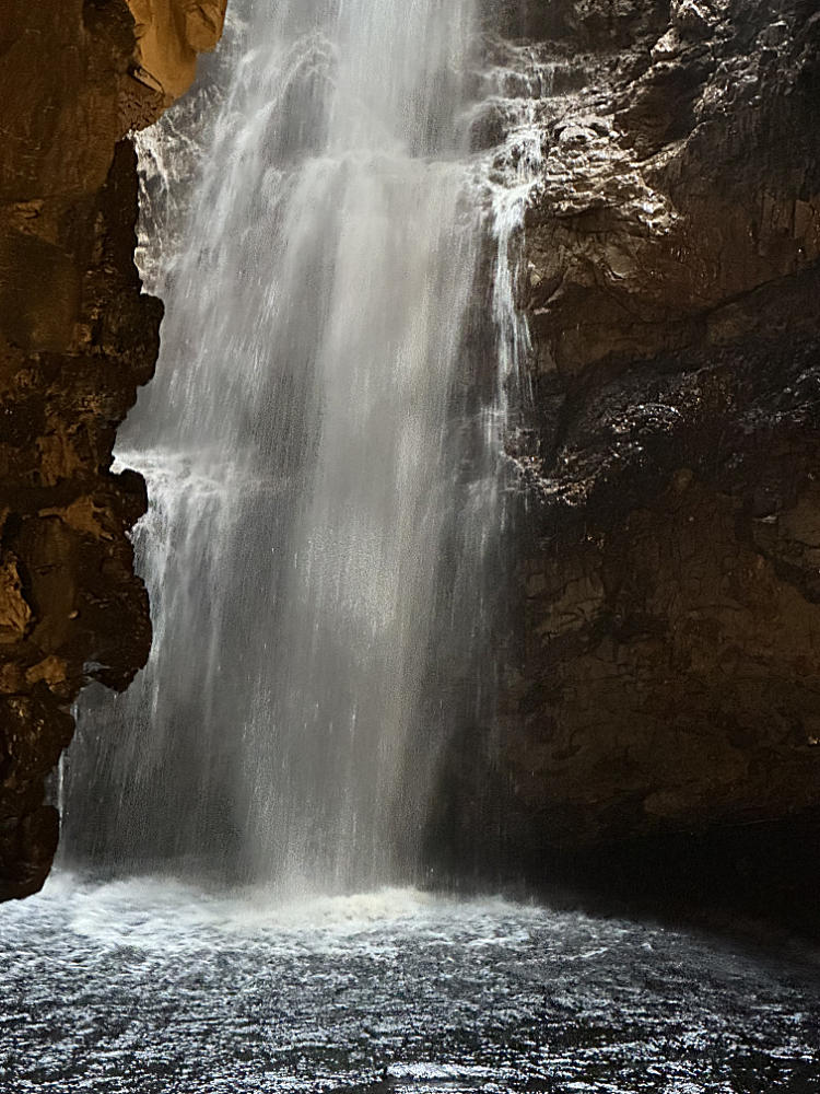 Höhlen, die das Meer und ein Bach gemeinsam gefressen haben.